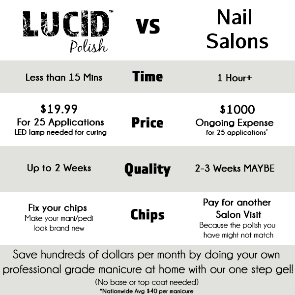 For a fraction of the price, you can have a professional grade gel mani or pedi that lasts up to two weeks, in 15 minutes or less!
